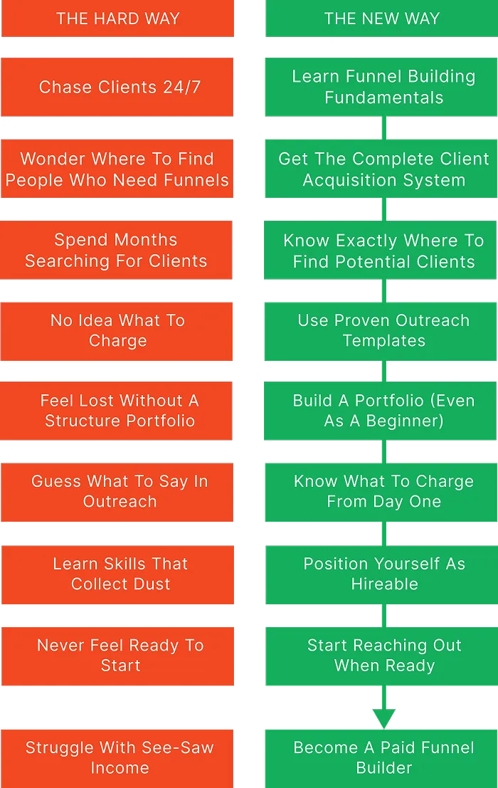 It's a simple system that shows you how to build funnels while simultaneously teaching you how to find clients and position yourself as someone they want to hire.