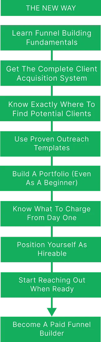 Free courses teach you the SKILL but leave out the most important part — how to actually GET PAID. Most people spend 3-6 months learning funnel building, then waste another 3-6 months trying to figure out how to land clients. This system does BOTH simultaneously. You're learning funnel building while actively landing your first client using our proven outreach system.